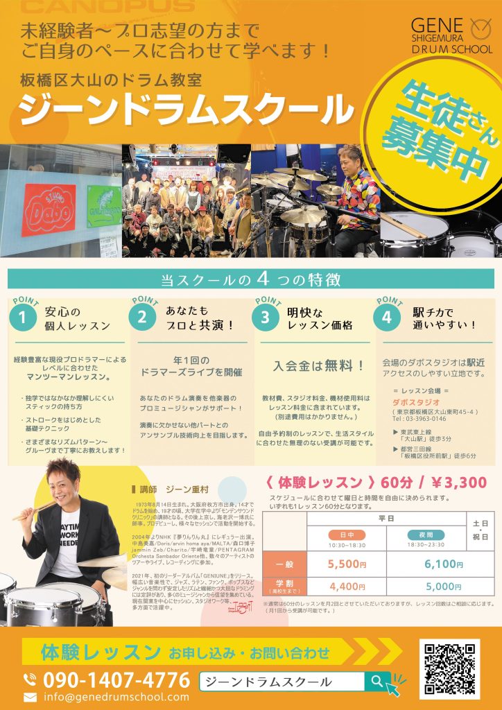 ジーンドラムスクール:初心者からプロまで板橋区のドラム教室