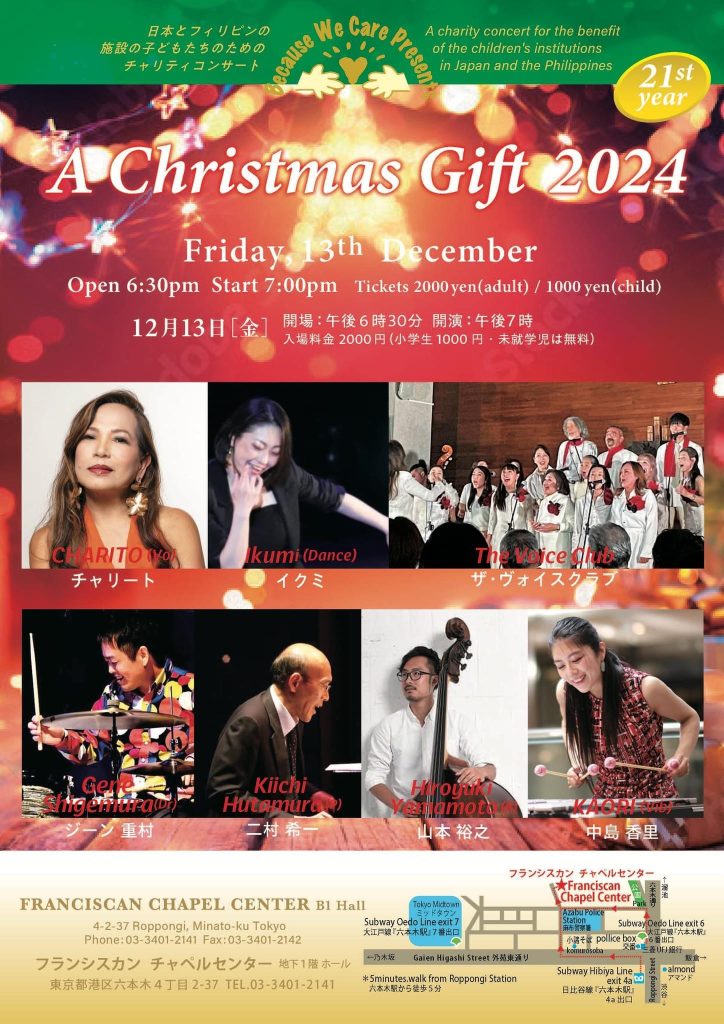 そして今日の夜は六本木のフランシスカンチャペルセンターでチャリートさん主催のA Christmas Gift 2024です。