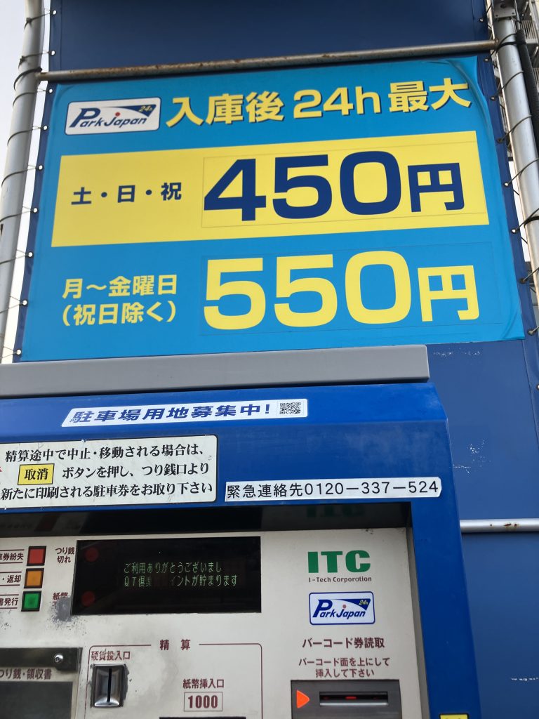お店の隣の駐車場は駅前なのに激安です。