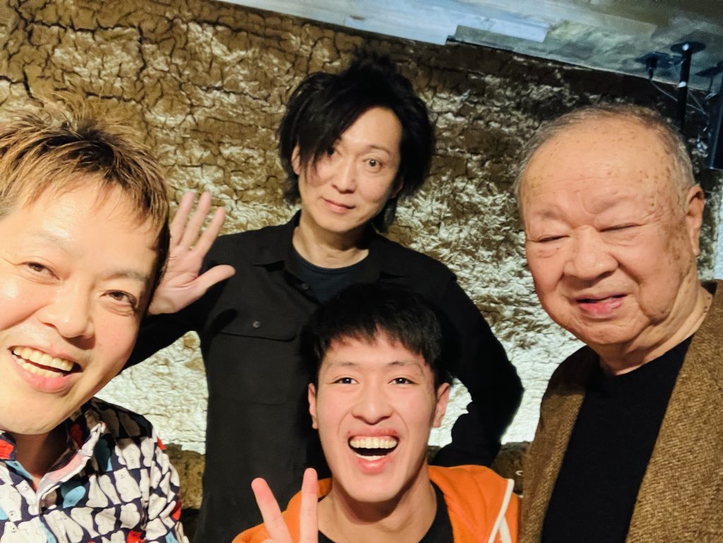 に終わってから片付け〜.搬出を手伝ってくれた水戸のドラマーも一緒にパチリ