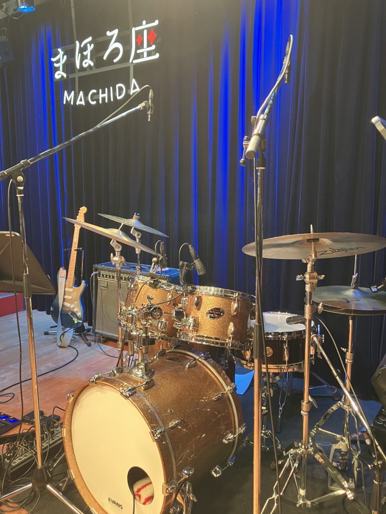 ドラムセットはお店のSAKAEのバーチをお借りしています。