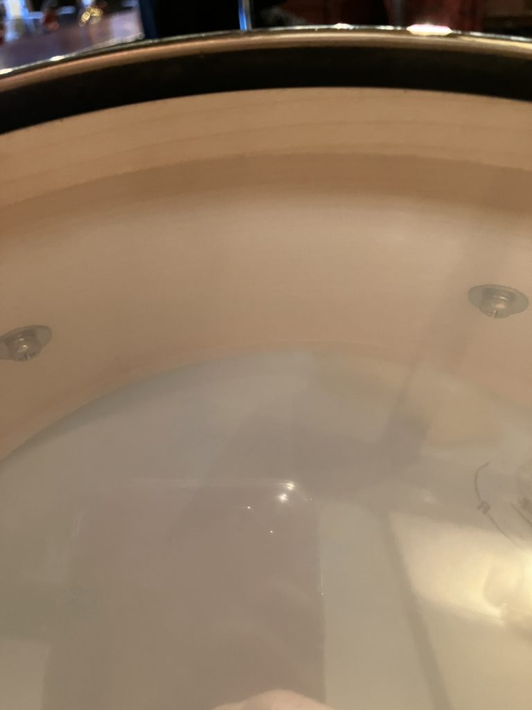 通常スネアは合板で作られる事が多いのですが、このスネアは1ply(単板)で1枚の板を曲げてあります。