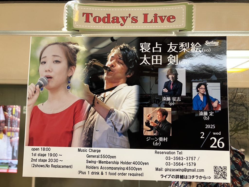 今日は5日ぶりに銀座Swingへ出演しています♫