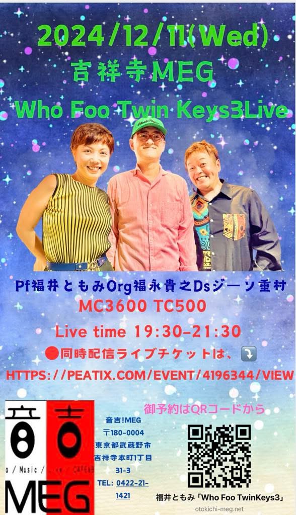 音吉!MEG 12月11日(水)福井ともみ&福永貴之「Who Foo TwinKeys3」同時配信ライブチケット