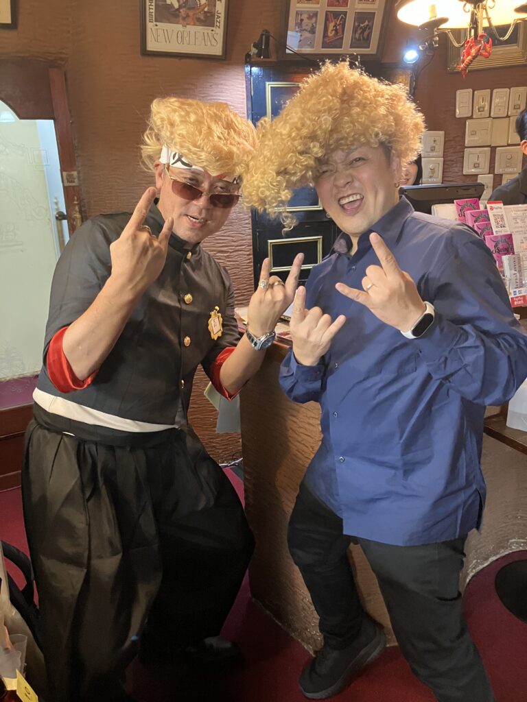 バースデーのサプライズでツッパリハイスクールロックンロールを演奏しましたが、Swing社長岩本さんのコスプレが凄いです!