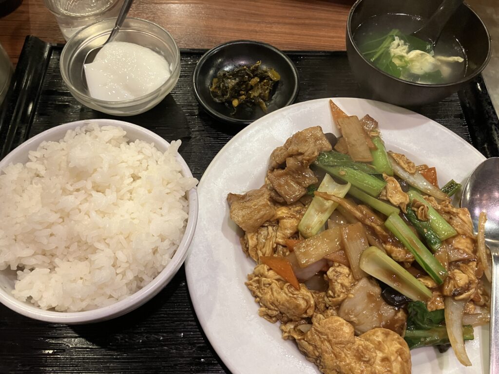 リハ後に近くの景記で豚肉とたまご、キクラゲ炒め