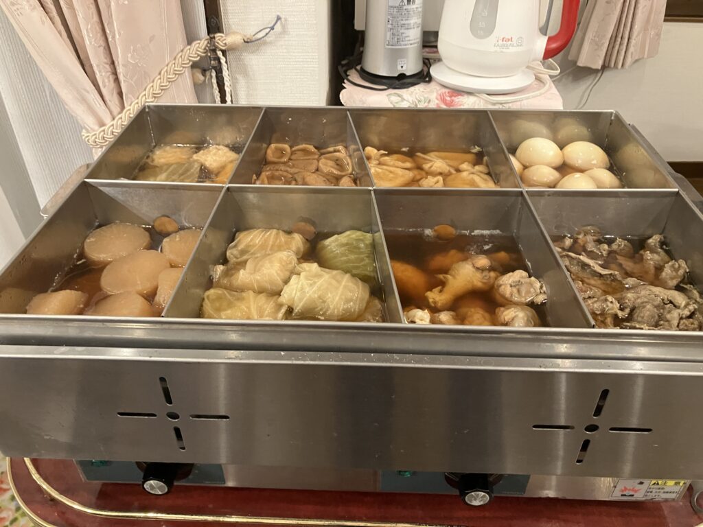 初日の夜はおでんや刺身をいただき