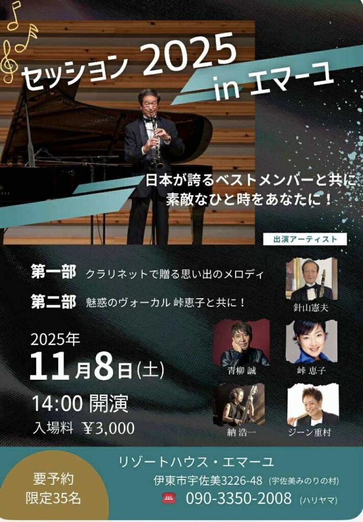 昨日から伊東のリゾートハウス・エマーユに来ていまして、今日はこれから針山憲夫さんとのライブです♪