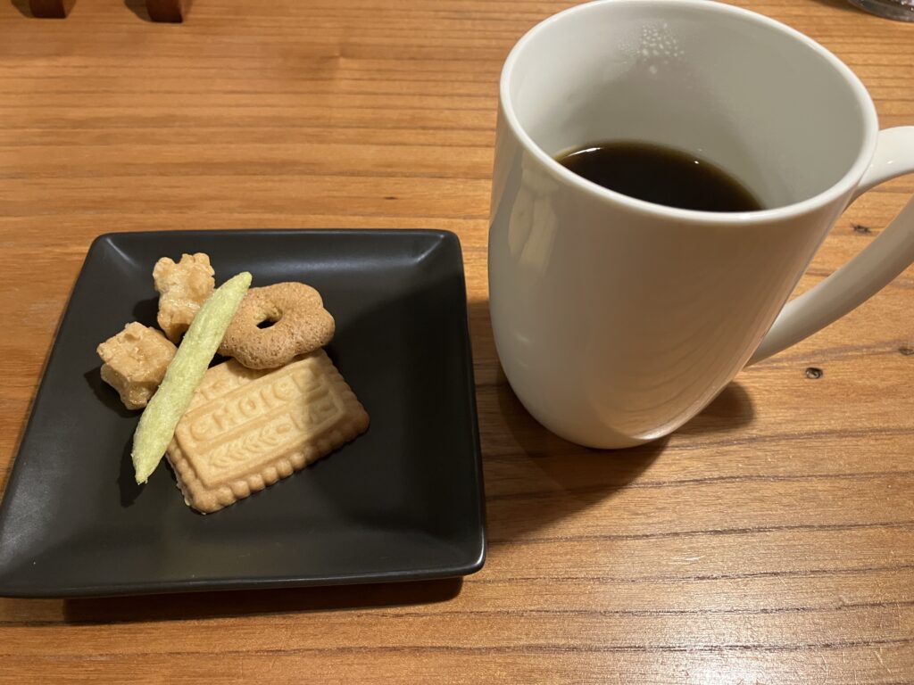 着くといつも美味しいお菓子とコーヒーを出してくれます