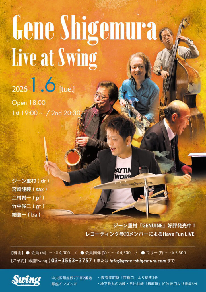 銀座Swingでの1月6日のライブ、予約受付中です!