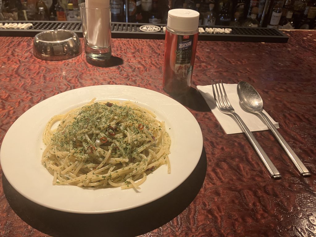 始まる前にペペロンチーノをいただきました。
