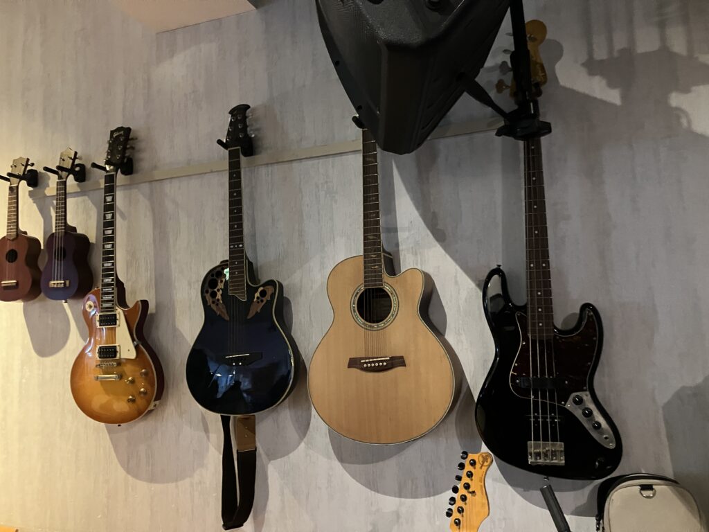 壁にはギターやベースが
