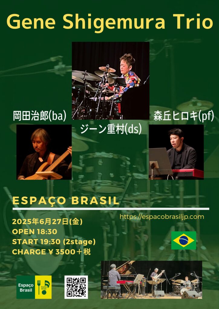 そしていよいよ今週の27日金曜日は蒲田のエスパッソブラジルにてジーン重村Trioです♪