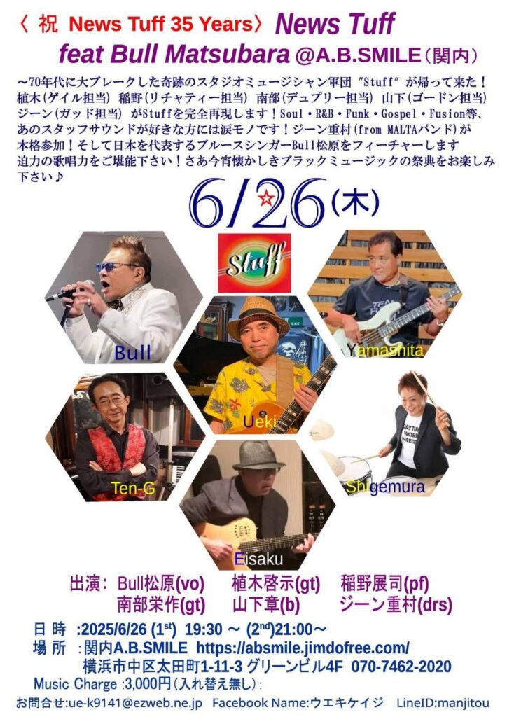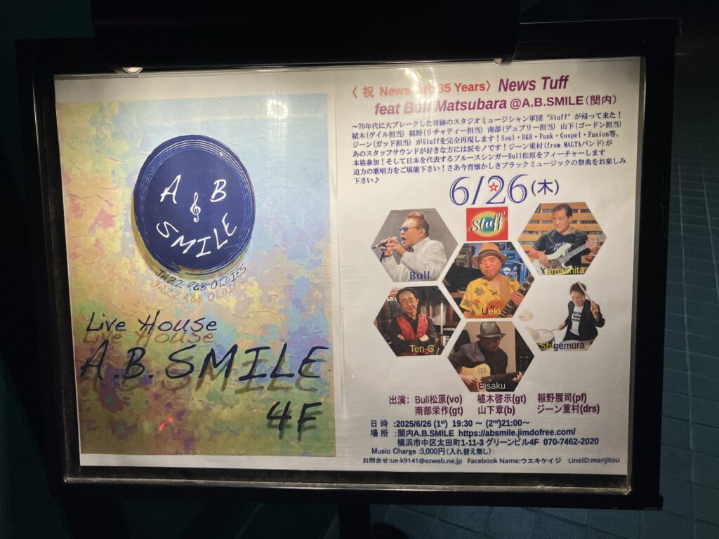 そして夜は、これから関内のA.B.SmileでNews Tuffのライブです♪