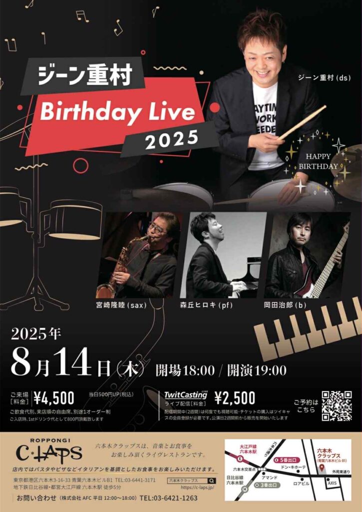 8/14にはこの3人+宮崎隆睦さんのメンバーでクラップスにてバースデーライブがあります。