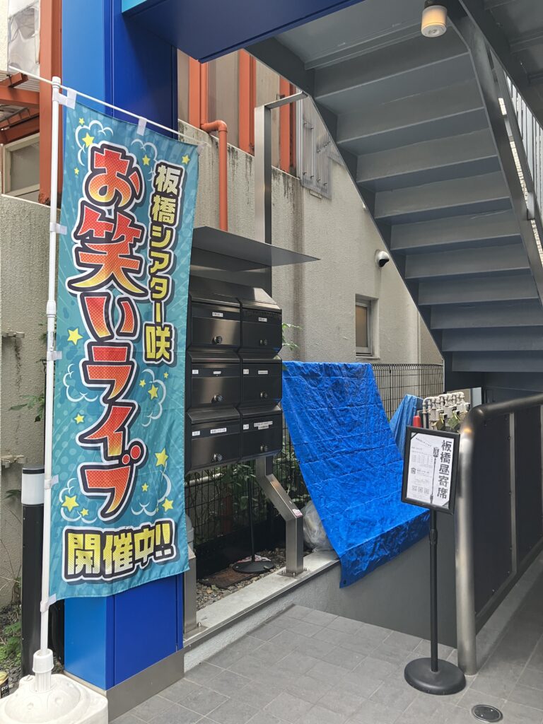 お隣のビルではいつも水曜日にお笑いライブをやっています