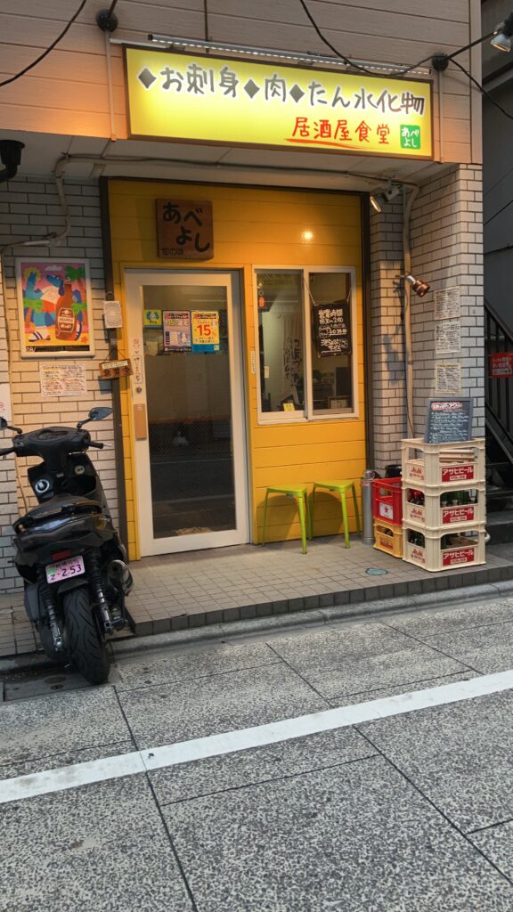 セッションの前に近所の居酒屋あべよしへ