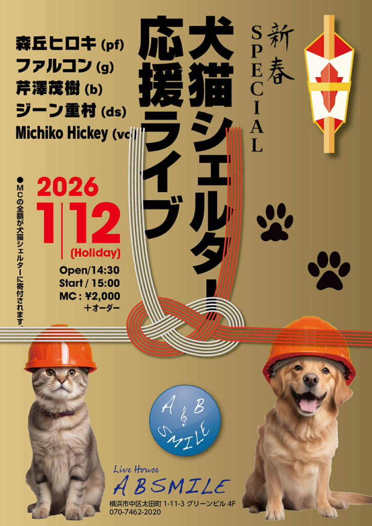 今日は横浜、日本大通りのA,B.SmileでMichikoさんの犬猫シェルター応援ライブです♪