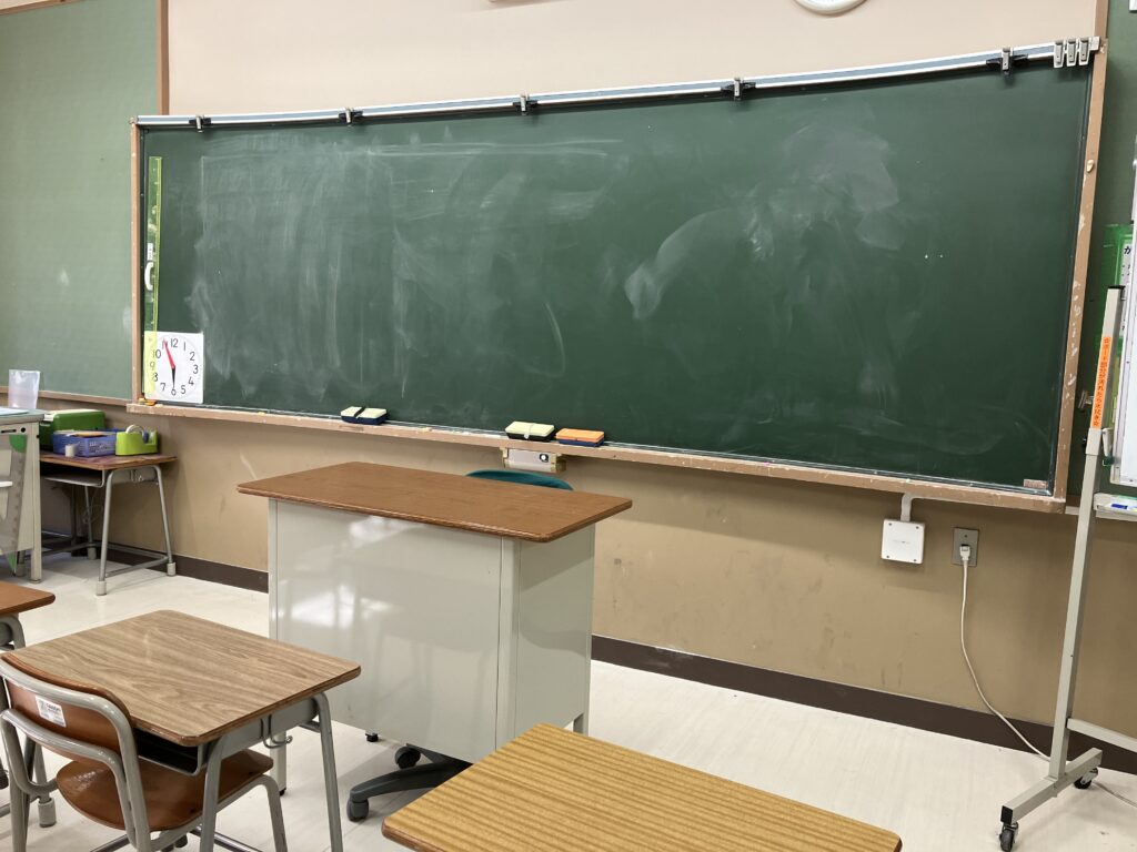 楽屋は懐かしい教室です。
