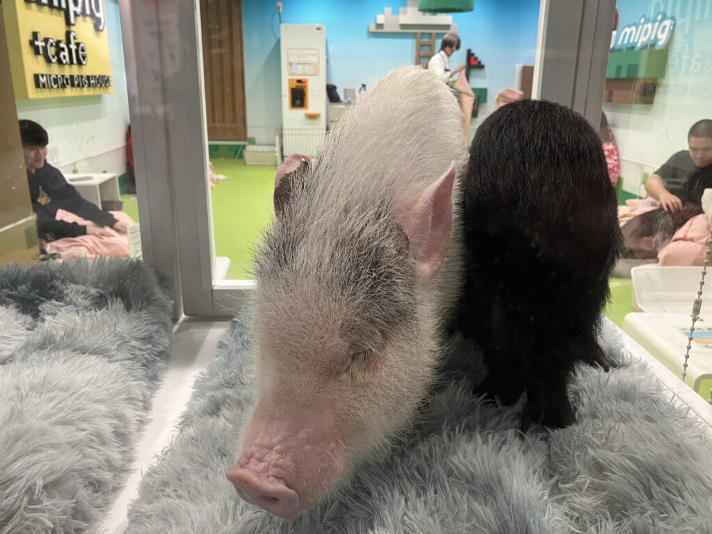 キャットカフェやカピバラカフェもありましたが、なんとPig Cafeもありました