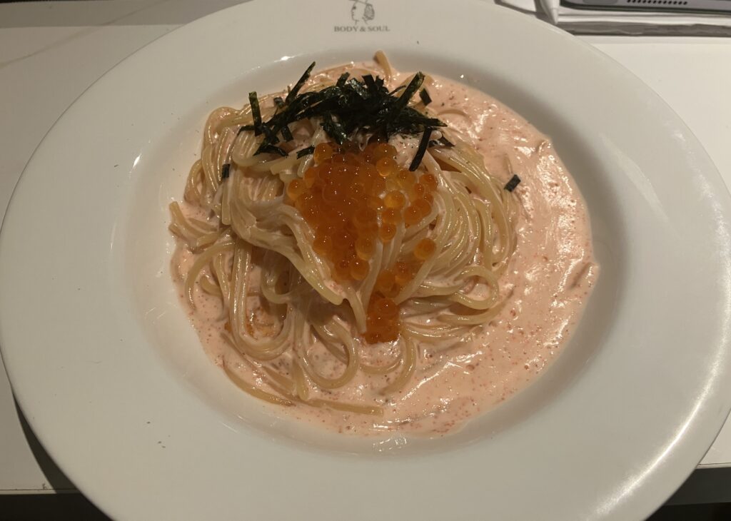 リハーサル後にお店の自家製タラコパスタをいただきました