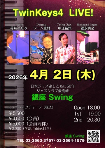 未分類今日は渋谷のBody&SoulでTwinKeys4のライブです♪