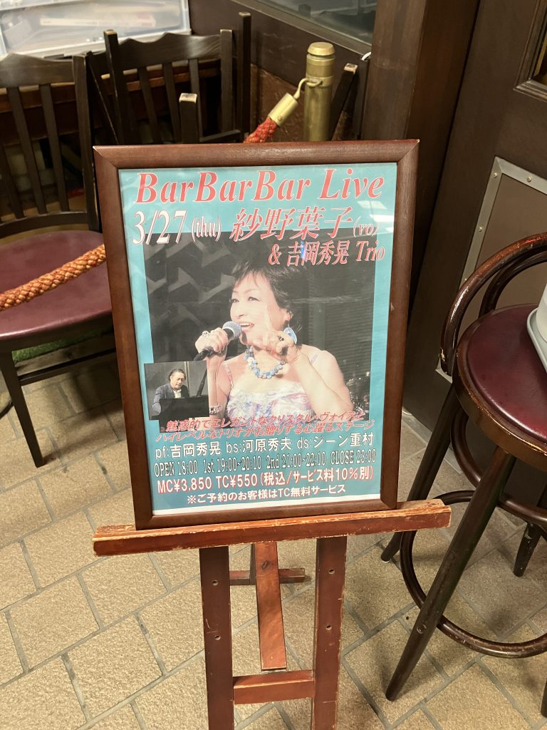 今日はこれから関内のBarBarBarで紗野葉子さんのライブです♫
