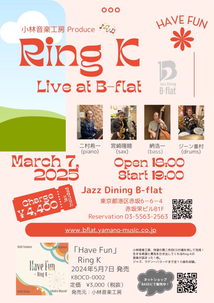 来月、僕がリーダーでもあるRingKのライブが赤坂Bフラットであります。